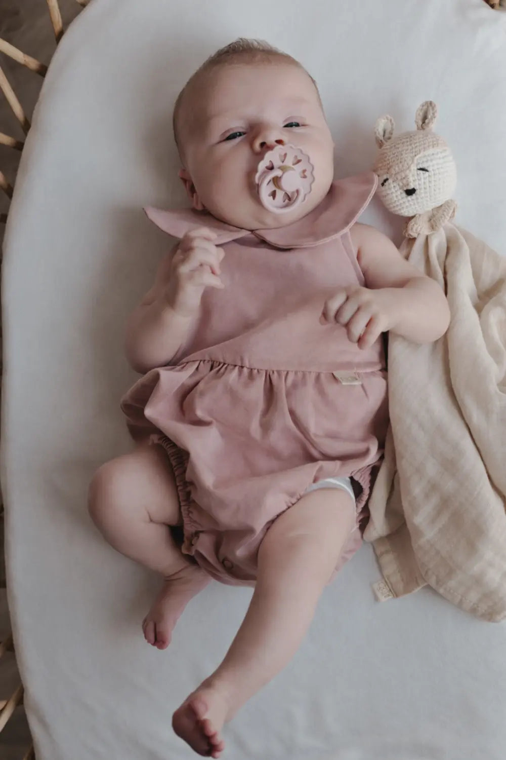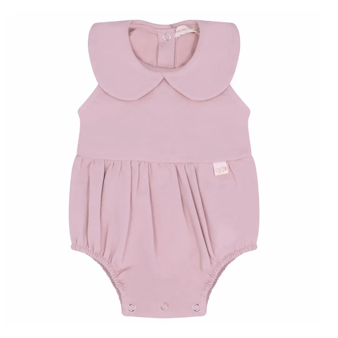 Zacht zomerpakje met Peter Pan kraagje in oud roze - luchtig en comfortabel. Zorgt dat je kleintje er ook op warme dagen super schattig uit ziet!
