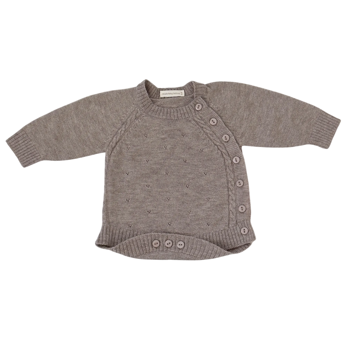 Softness in its purest form. This romper is knitted from 100% merino wool, specially selected for the delicate skin of a newborn. The delicate pointelle pattern gives the romper a timeless, vintage look, while the wool's natural properties ensure optimal comfort.