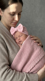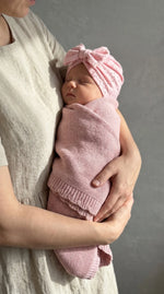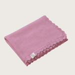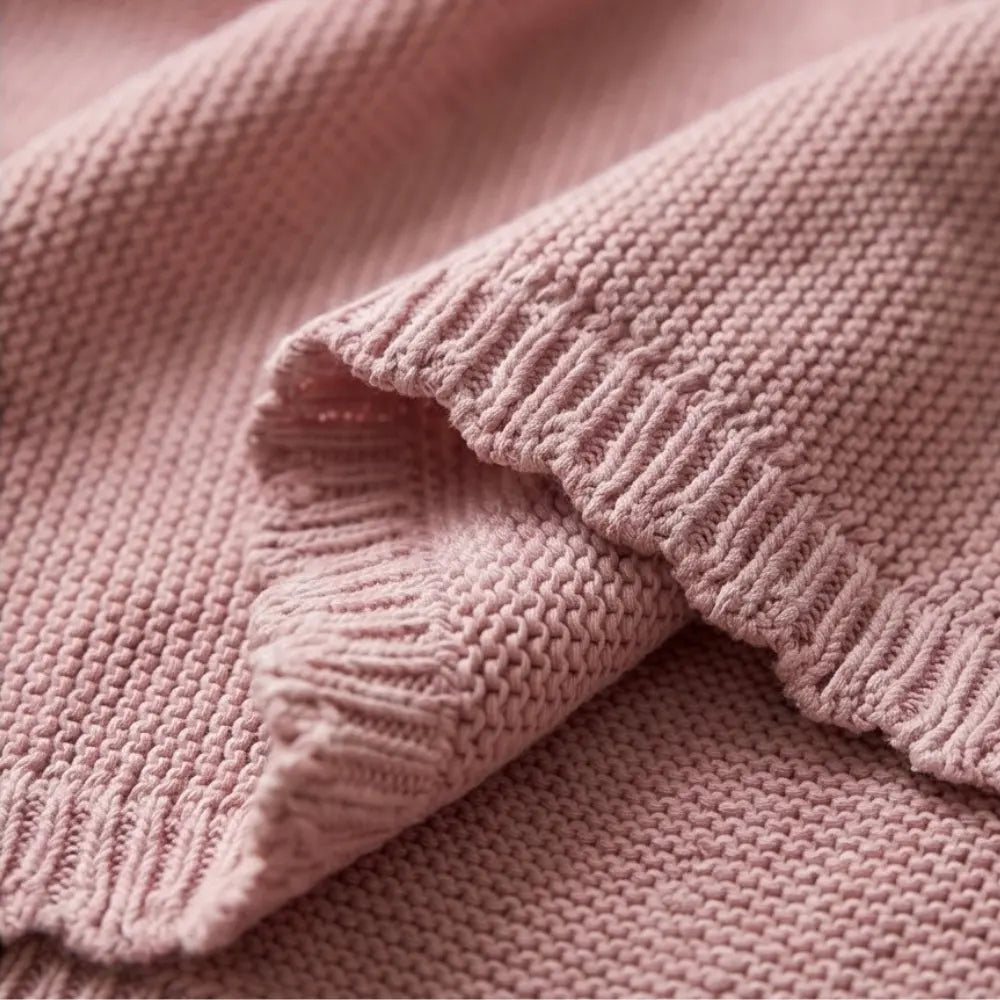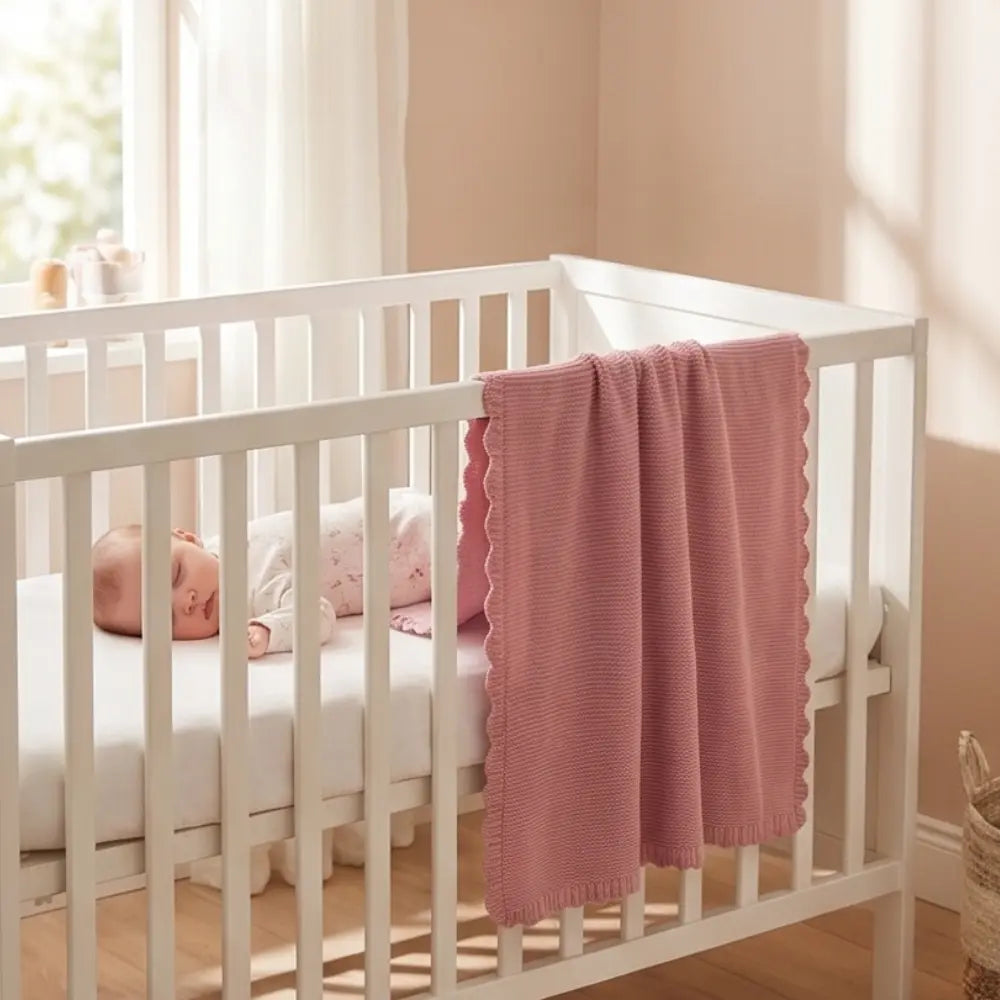 Zachte wiegdeken van 100% katoen in oudroze, met een soepele knit en verfijnde afwerking. Comfortabel voor dagelijks gebruik in wieg, kinderwagen of als wikkeldeken.