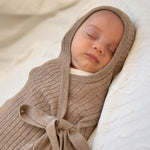 Geef je baby geborgenheid zonder hem te storen. De Bobbie heeft een unieke openslaande voorkant met houten knoopjes — zo omhul je je baby terwijl hij al slaapt. Van 100% merinowol, geschikt vanaf de geboorte. Kleur: Camel.