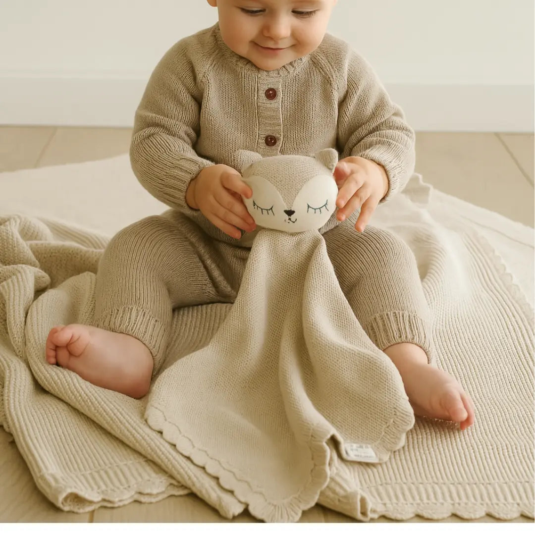 Cette couverture en coton pour bébé est conçue pour les tout premiers moments. Ni trop lourde, ni trop légère, mais juste parfaite. Le coton biologique est doux au toucher et naturellement respirant, ce qui garde votre bébé confortable – à la maison, en déplacement ou pendant une sieste.