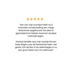 “Abbiamo faticato per mesi, trascorso molto tempo in ospedale e alla fine siamo tornati a casa con il sondino. Pedagogista, pediatra, logopedista pre-verbale: nessuno aveva le informazioni giuste. Eravamo disperati. Alla fine abbiamo trovato Daniëlle su Instagram. All’inizio eravamo scettici, avevamo già visto tanti specialisti. Ma dopo il contatto telefonico abbiamo accolto con entusiasmo il piano. Ha anche molta conoscenza dei bambini nati prematuri. Consiglio a chiunque abbia bambini con problemi di alimentazione il coaching di Daniëlle. Davvero ne vale la pena!”